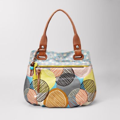 Meet Fossil Key-Per Shopper. I actually own this EXACT style purse except in fallish colors. I absolutely fell IN LOVE with this style. It does have a slight drawback: it looks really roomy, but it is hard to fit all that I have PLUS an umbrella. I really love this print/pattern as well. It is very neutral and yet not really. It does have a nice "new" feature" from my current Fossil style: the zipper on the front. Now that is nice. Plus I know my wallet will match since it is salmon-colored. :)